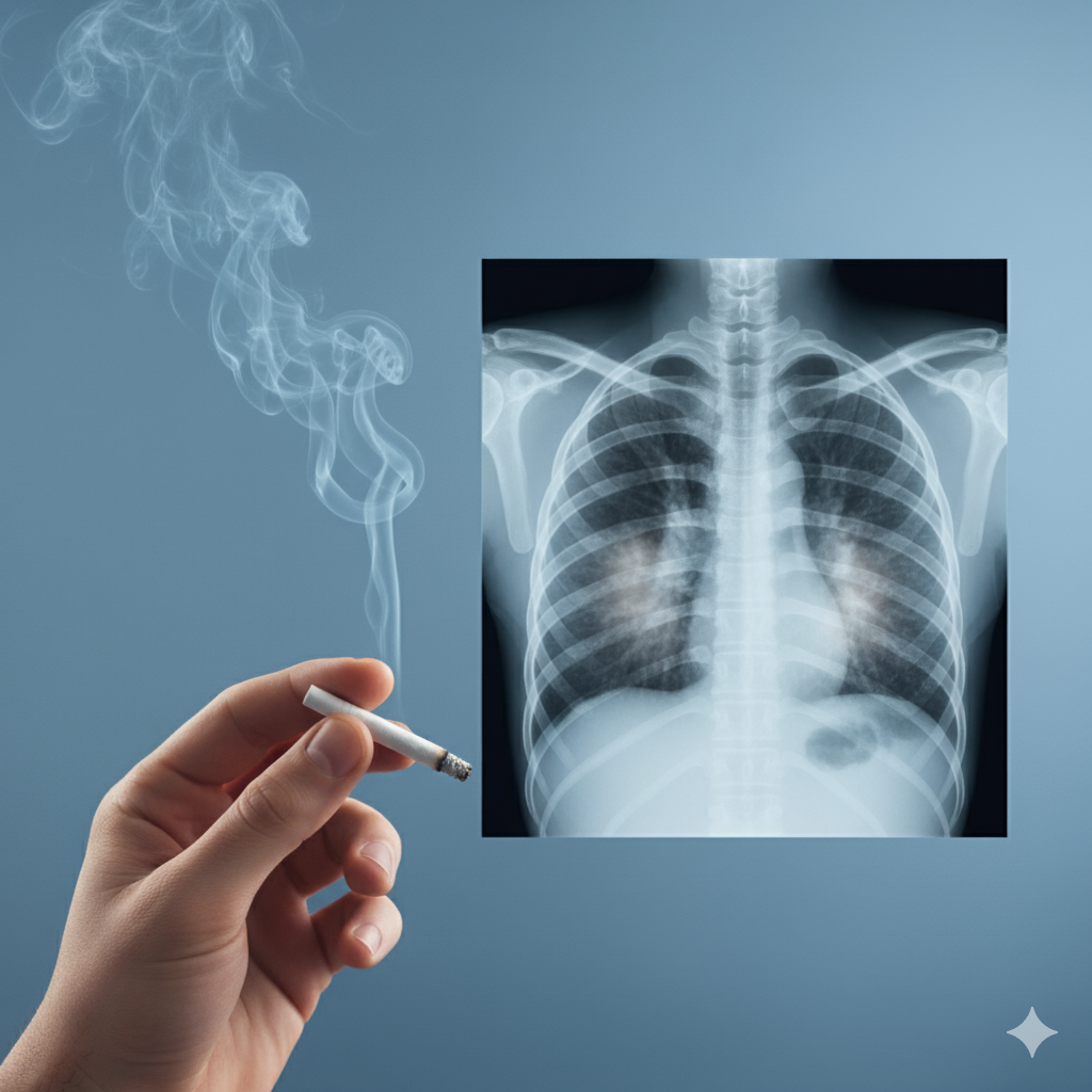 Курение, особенно на протяжении длительного времени, приводит к серьезным изменениям в легочной ткани. Смолы и другие токсичные вещества, содержащиеся в табачном дыму, оседают на стенках бронхов и альвеол. Это вызывает хронические воспалительные процессы, утолщение стенок, а также может спровоцировать развитие хронической обструктивной болезни легких (ХОБЛ) или эмфиземы. На рентгеновском снимке эти изменения могут проявляться в виде затемнений, уплотнений или других неоднородностей, которые иногда трудно отличить от патологических процессов, вызванных, например, туберкулезом или новообразованиями.