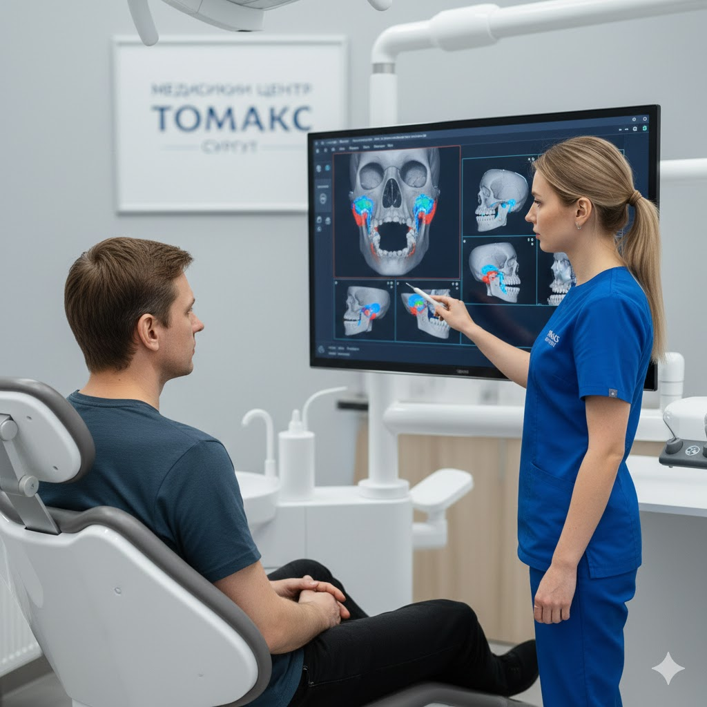 На КТ-снимке врач может детально рассмотреть состояние костных поверхностей, наличие костных разрастаний (остеофитов), сужение суставной щели или признаки эрозии. Точность метода позволяет выявить дегенеративные изменения на самых ранних стадиях, когда процесс еще обратим. В медицинском центре «Томакс» мы проводим высокоточную томографию челюстно-лицевой области, которая дает врачу исчерпывающую информацию для построения плана лечения, будь то ортодонтическая коррекция, изготовление разобщающих суставных шин или физиотерапия.